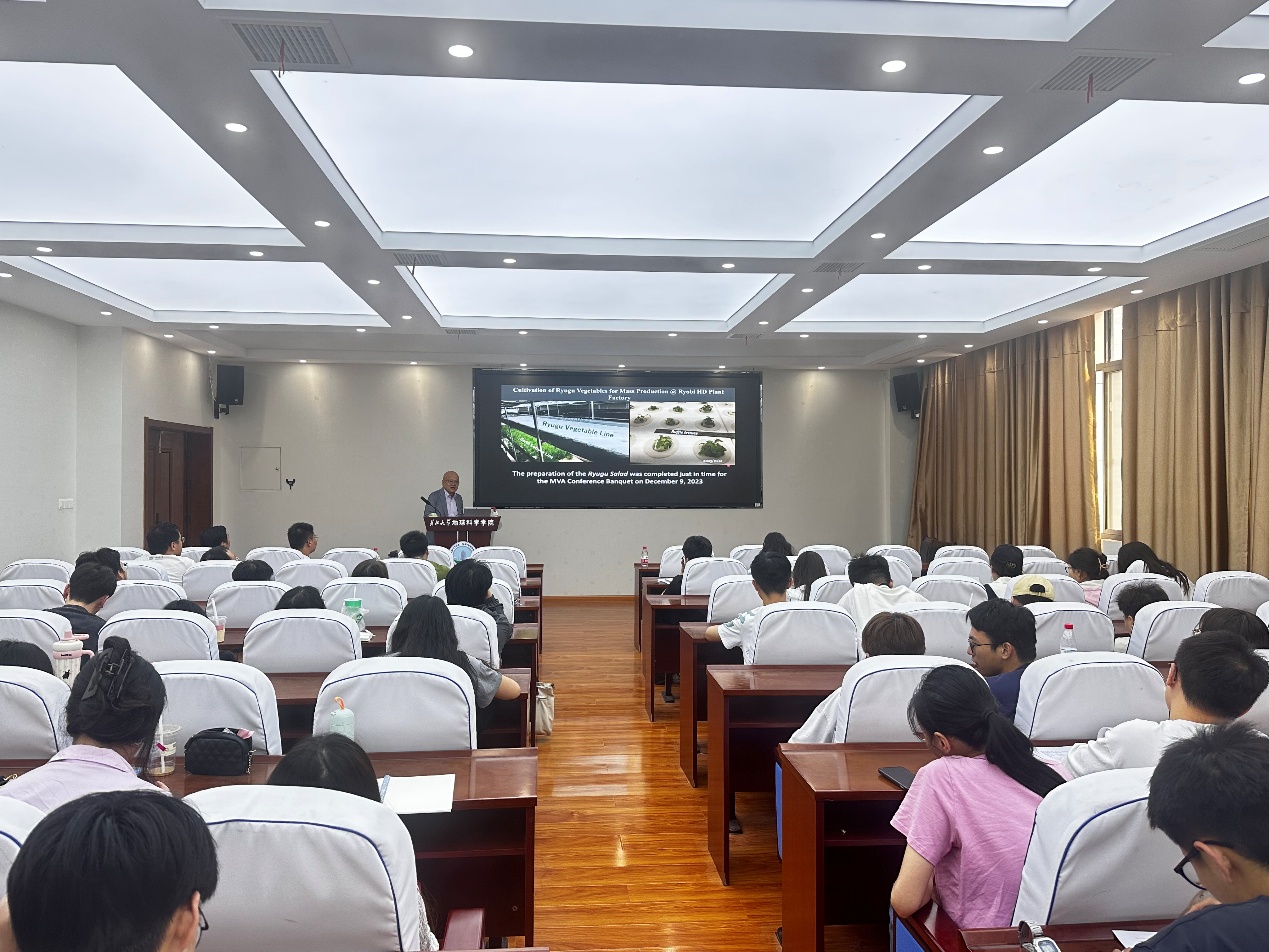 报告会上,Eizo Nakamura教授围绕地外资源的原位利用这一主题,详细介绍了自2020年日本“隼鸟号”探测器将近地小行星“龙宫”样品带回地球以来,近5年间的最新科研成果。在龙宫样品被带回地球前,Nakamura教授带领其团队做了全面的实验测试准备工作,实现了从原位高精度元素地球化学分析到全岩同位素测试的全面突破,建立了地球及地外物质综合分析实验室(CASTEM),突破了传统的学科界限,从高精度地球化学测试扩展到材料科学的应用上。基于此平台,Nakamura教授团队揭示了碳质小行星中挥发分及有机质的来源,这些生命必须元素也为地球生命起源及其宜居性演变提供了重要指导意义。报告最后,Nakamura向听众展示了利用“龙宫土”种植出的蔬菜,并大胆假设在近地碳质小行星上的蔬菜大棚建设。这场兼具科研与科普性质的报告成功吸引了公司师生的兴趣,报告持续了近90分钟。