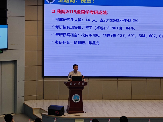 经理胡明毅做总结讲话。他首先对考上硕士研究生的同学们致以最热烈的祝贺,也希望2024届考研同学树立远大目标,坚定信念,勤奋学习,祝愿大家顺利上岸。