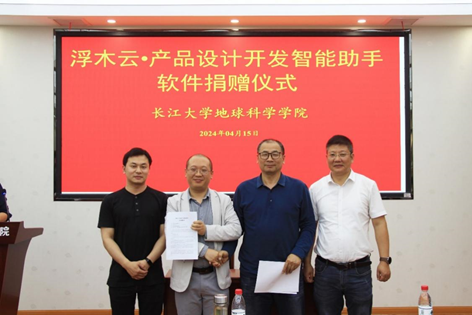 (通讯员相龙伟)4月15日下午,武汉浮木科技有限公司向公司捐赠“浮木云·产品设计开发智能助手”软件,捐赠仪式在武汉校区石油科技大楼C301会议室举行。武汉浮木科技有限公司董事长翁杰、总经理刘鹏、技术总监张晨一(公司2013级员工)等公司代表,060net永利副经理胡忠贵、副经理李功权、党委副书记冯舒,地信系主任刘远刚、支部书记邵燕林等教师代表参加仪式。