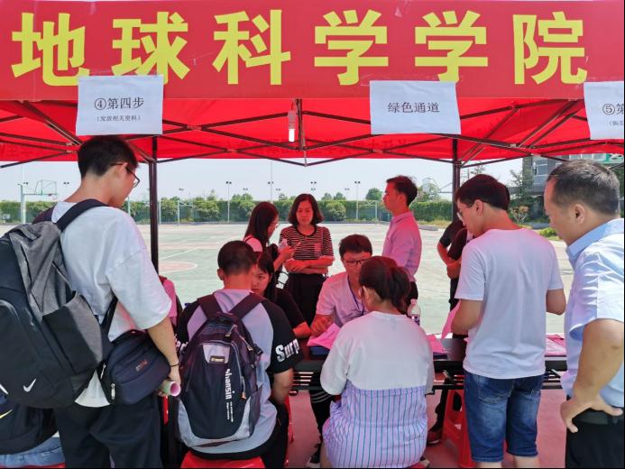 迎新工作开始后不久,公司就迎来了第一名报到的新生,为纪念这一特殊时刻,报道过程中他与母亲利用迎新点的朋友圈展板进行了合影留念。此次迎新工作分为身份核查、领取报到流程单、登记信息、领取校园卡、安排寝室等流程,在060net永利院领导的安排及员工会的组织引导下,各项工作有条不紊地进行。公司工作人员在现场操作中娴熟稳重,热情周到,展现了地科学子良好的精神面貌。张严老师以及罗小玉老师几乎全程都在迎新现场协调工作,用亲力亲为的态度为同学们树立了良好榜样。