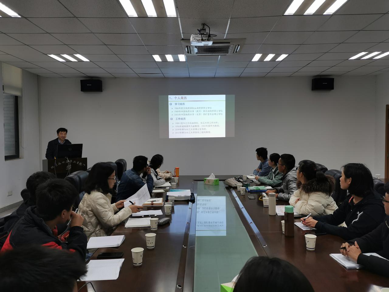 首先,胡教授给同学们分享了自己在读硕士博士期间的经历,介绍了在教学、科研方面的主要工作和自己的所取得的主要学术成就。胡教授用自己求学期间的和老师、同学相处、学习的实际例子告诉同学们要先做人,后做事,学会和同学、老师、家人相处。当胡教授讲到自己发表学术论文120余篇,被SCI、EI等收录50余篇,特别是在评教授后还在不断归纳、提炼自己在科研工作中的成果,还发表了50余篇文章,在场的员工都表示“震撼”。