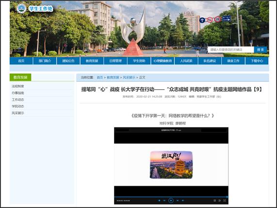 讲好抗“疫”思政课,传递战“疫”正能量。疫情期间的开学第一天,廖鹏程老师制作发布“众志成城 共克时艰”抗疫主题网络视频《网络教学的希望是什么》,通过QQ空间、B站、抖音、微博、腾讯视频、西瓜视频以及公司学工部官网宣传,利用新媒体平台讲好特殊时期的思政课。