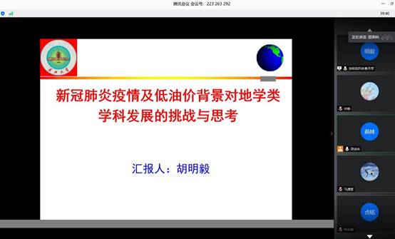 (通讯员 邓帆)2020年6月18日下午,060net永利地信系全体教师开展集中政治理论学习和支部主题党日活动。会上,支部书记邵燕林主持和带领全系教师进行了政治理论学习和支部主题党日活动,060net永利经理胡明毅给老师们上了题为《新冠肺炎疫情及低油价背景对地学类学科发展的挑战与思考》的党课,地信系主任李功权主持了办学思想讨论并布置了下一阶段主要工作。