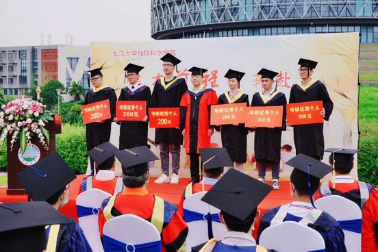“本届毕业生取得了升学率38%,126人读研的亮眼成绩。”在吴楠副经理宣读表彰决定后,考研先进集体、寝室、个人的领奖代表依次上台。这一环节无疑掀起了典礼的首个高潮,观众忍不住举起手机,起身拍照点赞。