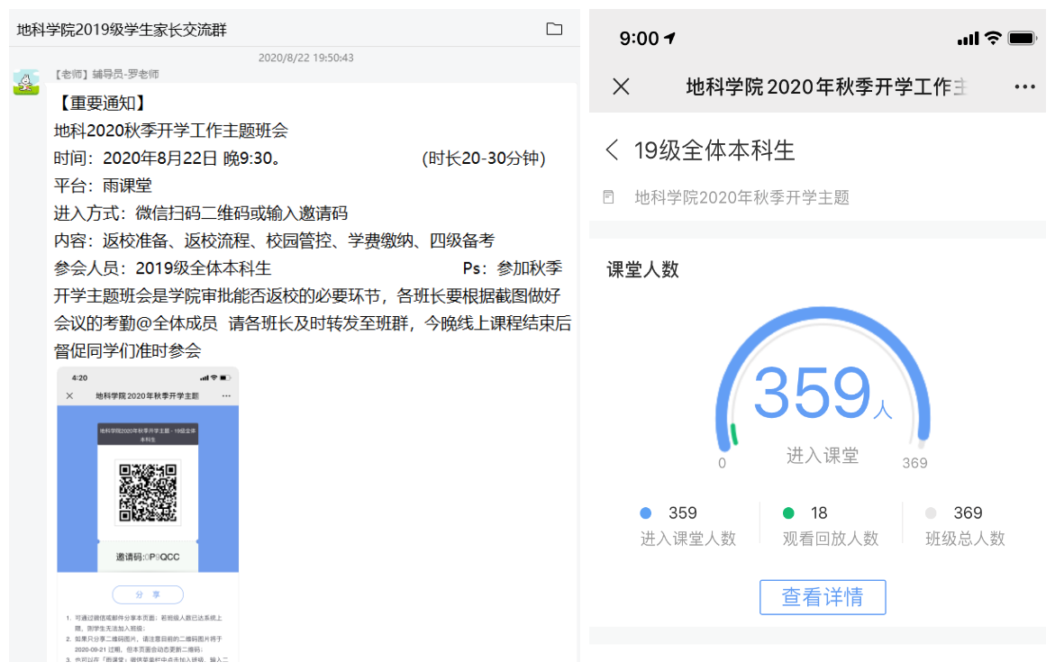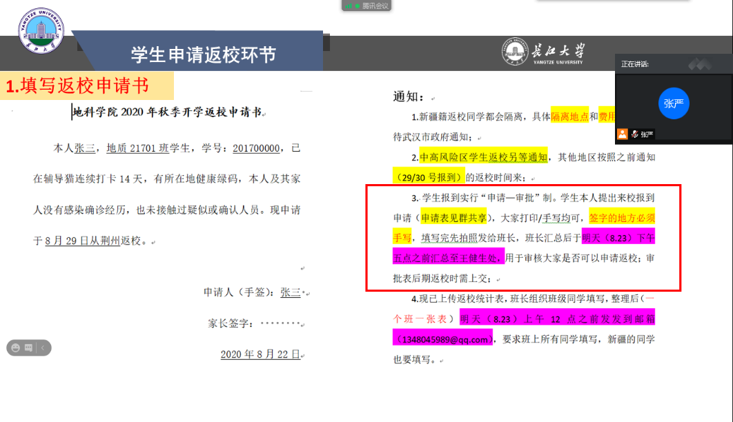 8月22日,公司分年级利用腾讯会议或雨课堂召开“2020年秋季开学工作”主题班会,会议由各年级辅导员主持,学工办全体老师参会。主题班会开始前,各年级辅导员先以班级为单位,进行点名和签到,确保所有员工和家长到会。主题班会从返校安排、返校前的准备、报到流程、校园管控三阶段和学费缴纳五个方面展开。各年级辅导员为大家重点讲解了分批返校和校园管控三阶段的具体安排,强调了返校前必须的14天连续健康打和按流程返校,并将“申请—审批”制度的具体做法向员工进行了说明。班会最后,各年级辅导员分别就同学们提出的问题或疑惑一一进行了解答。员工和家长纷纷表示本次班会让大家更加全面了解到公司和公司的整体防控工作,也明确了返校前后需要做的准备,是非常必要的会议。