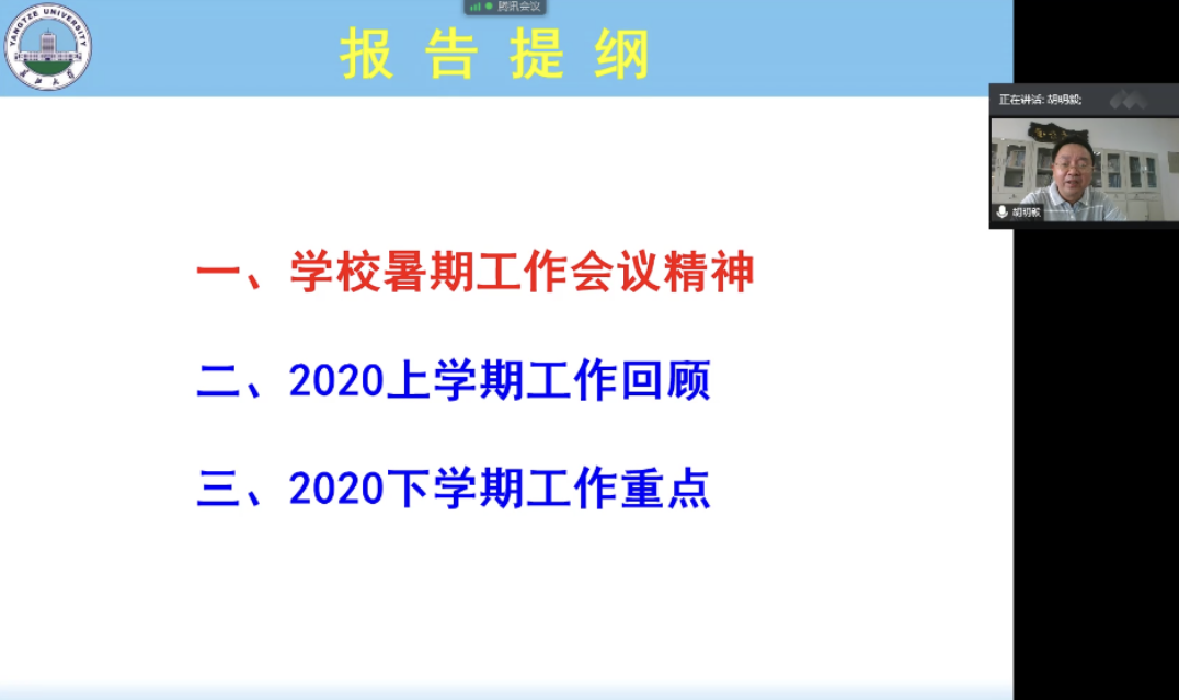 (通讯员 张昊)新学期,新气象。为安全有序开展新学期公司产品工作,加快推进“双一流”建设,8月30日下午,公司召开全体教职工会议,全院113名教职工通过腾讯会议平台参加了会议,会议由党委书记江万哲主持。