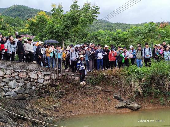 实习期间天公不作美、阴雨连绵,为了保质保量完成实习任务,实习队师生坚持冒雨上山,成了刘家场一道靓丽的风景。