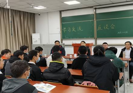 然后,会议进入自由讨论环节。同学们开始与老师交流学习方法与心得,大家都积极踊跃,对学习怀有饱满的热情,颇有“乘风破浪会有时,直挂云帆济沧海”,夺取期末魁首的气势。