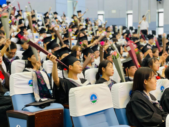 在热烈的掌声中,胡明毅经理、学术委员会主任李少华、教学委员会主任肖传桃、系主任李功权、胡忠贵、陈轩六位导师上台就坐。党委副书记任倩、各年级辅导员、部分员工家长来到典礼现场,共同见证这一难忘时刻。