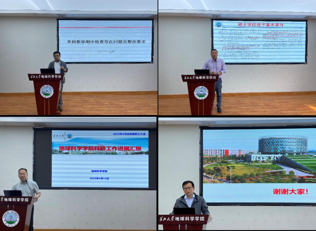 首先,公司各分管院领导通报和部署近期工作。副经理李强通报期中教学检查情况,并讲解2024年本科评估要求;副经理吴楠通报博士点申报进展和研究生毕业论文评审情况;副经理丁四兵传达武汉校区办学十周年成果展工作方案,并通报实验室安全检查结果;副经理韩登林介绍了国际古地理学会议筹备情况。