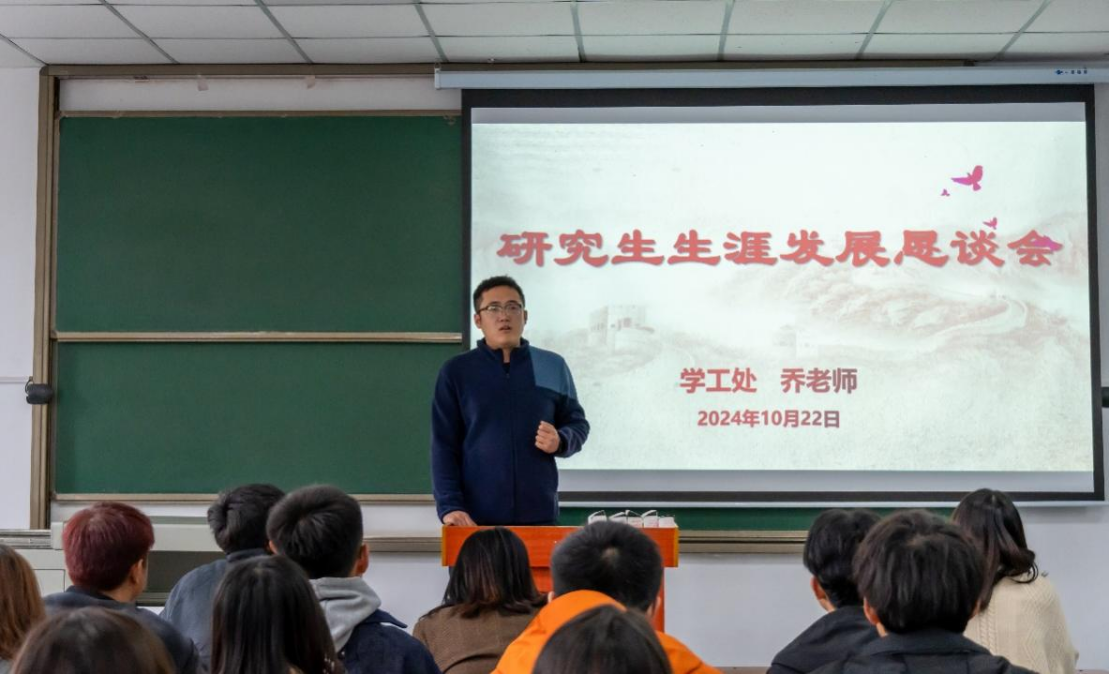 会议最后,学工处的乔老师就060net永利研究生未来的就业生涯规划做出了指导,着重讲述了实习的重要性,并根据个人经验为在座的研究生给予了生涯发展意见。