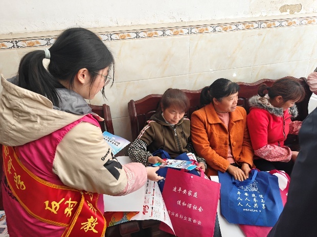 资工12401班的陆新灿寒同学参与了德保县妇女联合会的实践活动,协助开展妇女权益保护、家庭教育宣传等工作。她深入社区和乡村,为妇女群众提供法律咨询、心理辅导等服务,用实际行动传递温暖和力量。妇女联合会的工作人员对员工的表现给予了高度评价:“老员工认真负责,充满热情,他们的参与为我们的工作注入了活力。”