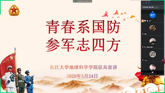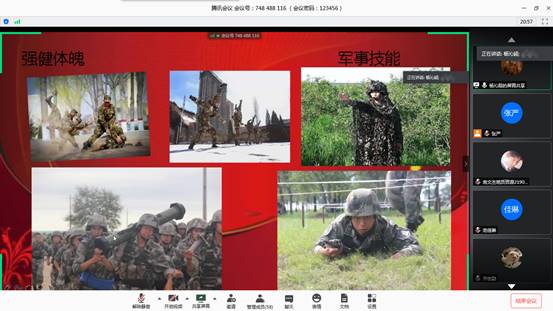 通讯员 王铃淇)为鼓励公司员工积极参与应征入伍,提高兵员征集质量,推进国防和军队现代化建设,公司开展老员工入伍宣传工作,公司于5月24日晚7时,在腾讯会议召开“青春系国防,参军志四方”征兵宣讲主题活动。此次会议由张严老师主持。