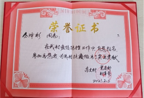 他和父亲通了视频电话,听到父亲说“危机关头,党员们都冲在前面,我们群众也要跟紧脚步,社会的建设不仅要靠党的领导,也要靠集体的努力”他很受鼓舞,做完两次核酸检测、并隔离观察一周后,仝泽彬主动请缨,投入家乡抗疫志愿工作。