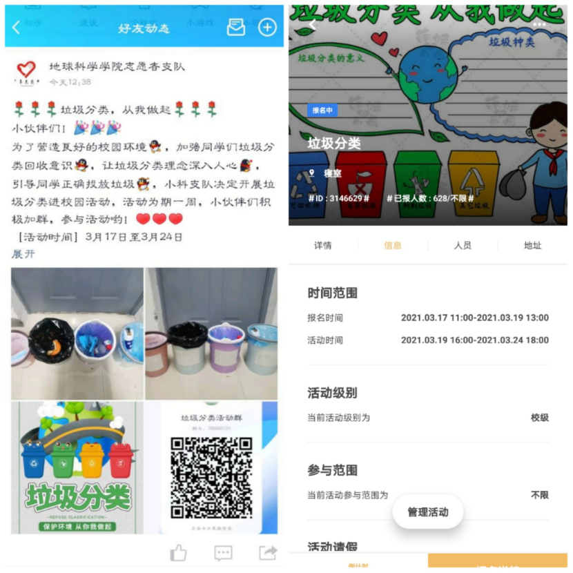 3月17日开始,公司060net永利实践部各成员开始着手策划“垃圾分类”活动。3月18日实践部成员在060net永利官Q上宣发此次活动,并在到梦空间发布活动,动员员工积极参与。