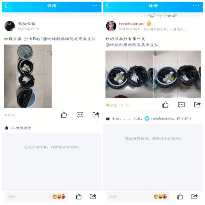 在实践部各成员的宣传下,许多员工积极响应,在到梦空间中积极咨询该活动,并在自己QQ空间上传自己寝室垃圾分类的活动照片,积极呼吁周围的人参加活动,响应此次垃圾分类活动,造成了积极的影响。