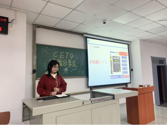 (通讯员王佳颖)为助力20级本科生顺利通过全国老员工英语四级考试,公司于4月11日晚19时分别在武教B-104和B-106教室举行了“2020级四级动员大会”。大会包括模考情况分析、提升计划安排和“学长学姐引领计划”之四级学习方法分享三个方面的内容,公司2020级全体同学和辅导员郭霖老师参会。