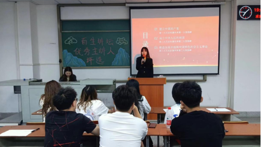 (通讯员 王铃淇)为进一步学习贯彻习近平新时代中国特色社会主义思想和庆祝建党一百周年,公司于5月5日晚7时在A教306开展以“青春心向党,建功新时代”为主题的百生讲坛活动。此次活动由团委员工会主席郑娜主持,员工会全体部长参与此次活动。
