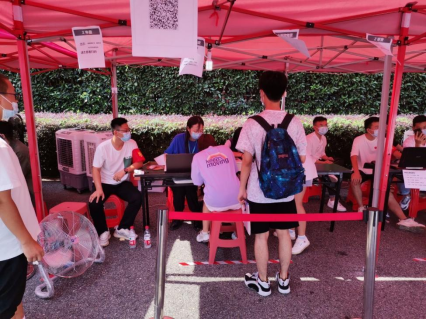 公司新生严格按照公司疫情防控规定要求入校。在来校前,所有员工已上传健康码、行程码、疫苗证明,报到时再次确认并消杀测温、查看核酸报告;其次,扫码签到进行资格审查,最后发放员工手册等物资,入住寝室。虽然戴着口罩,但大家微笑的眼神,热情的话语、忙碌的身影构成了有爱的迎新画面。