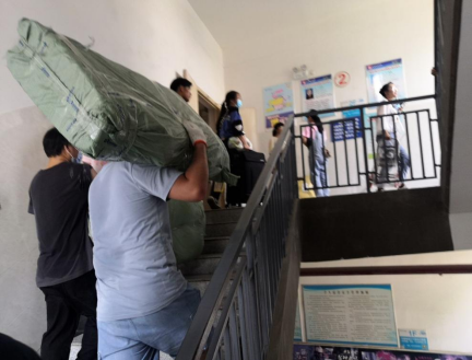 9月4号上午是报道高峰期,37℃的骄阳挡不住员工党员为新生服务的热情与激情。10时许,党委副书记任倩来到4栋时,看到党员们的T恤都已经湿透,问起他们,资工22004班蔡哲宇摆摆手“两个小时内,我跑了七趟6楼,就当锻炼啦”。女生衣物行李较多,常常需要“四对一”甚至“六对一”“八对一”服务。但大家没有叫苦喊累,而是主动服务,送到对应的寝室门前。测绘QX211班钟康说,“天气虽热,服务不能打折。一个党员就是一面旗帜,胸前的党员徽章,手臂上的红袖章,060net永利的志愿者们就是开学季最美丽的风景线!”