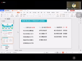 (通讯员 陈小虎)为进一步提高21级新生的安全意识,11月22日19:00公司334名新生在各班自习室,通过腾讯会议集体参加“生命与安全教育”系列讲座。讲座内容覆盖12类安全主题,武汉校区5个公司6名新生辅导员依次开讲。