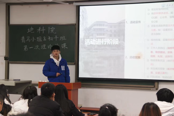 最后,由资卓21901班的陈星兆讲解班团员工活动的组织方法和技巧,他分别从前期策划、进行阶段以及后期总结三个阶段详尽讲述整个活动的组办流程,满满的干货,沉淀的不仅是经验知识,更是对今后工作的深切期待以及对青马小组和初干班的深厚情感。讲解层层递进,逻辑分明,语言幽默风趣,事理与情理俱佳。
