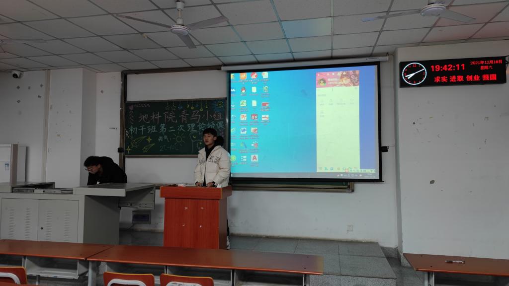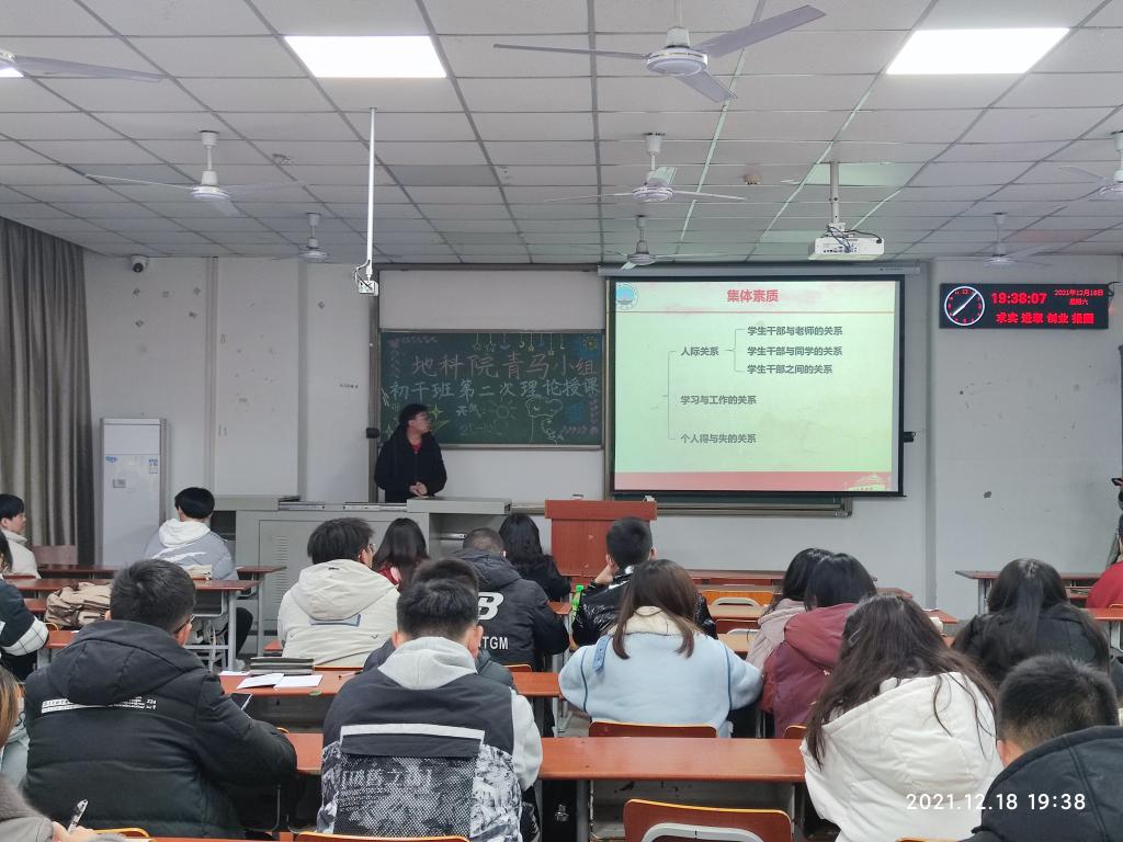 (通讯员:杜子萱 白硕)2021年12月18日19时,060net永利青马小组及员工干部初级培训班在A104教室开展第二次理论授课。本次活动由班导陈星兆、高婧,地科团委员工会副主席王高寒、李勇,小组长李银凤、黄汉臣及青马小组、员工干部全体成员参加。