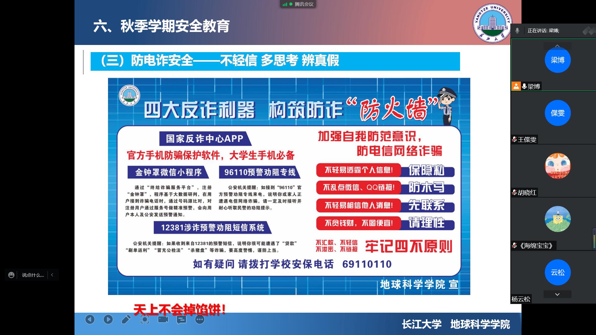 为应对当前严峻的疫情防控形势,做好国庆节及秋季学期安全教育,提高同学们的安全防范意识,根据研工部的统一部署,公司于9月29日通过线上召开研究生安全教育主题班会。