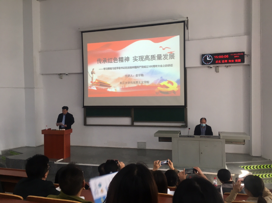 为深入学习贯彻习近平总书记“七一”重要讲话精神,推动党史学习教育走深走实,10月28日下午3点10分,公司组织全体教职工和员工党员参加“学习贯彻习近平总书记“七一”重要讲话精神”主题宣讲会。此次宣讲会由永利官网马克思主义公司经理姜学勤教授主讲,主题为“传承红色精神、实现高质量发展-学习贯彻习近平总书记在庆祝中国共产党成立100周年大会上的讲话”。