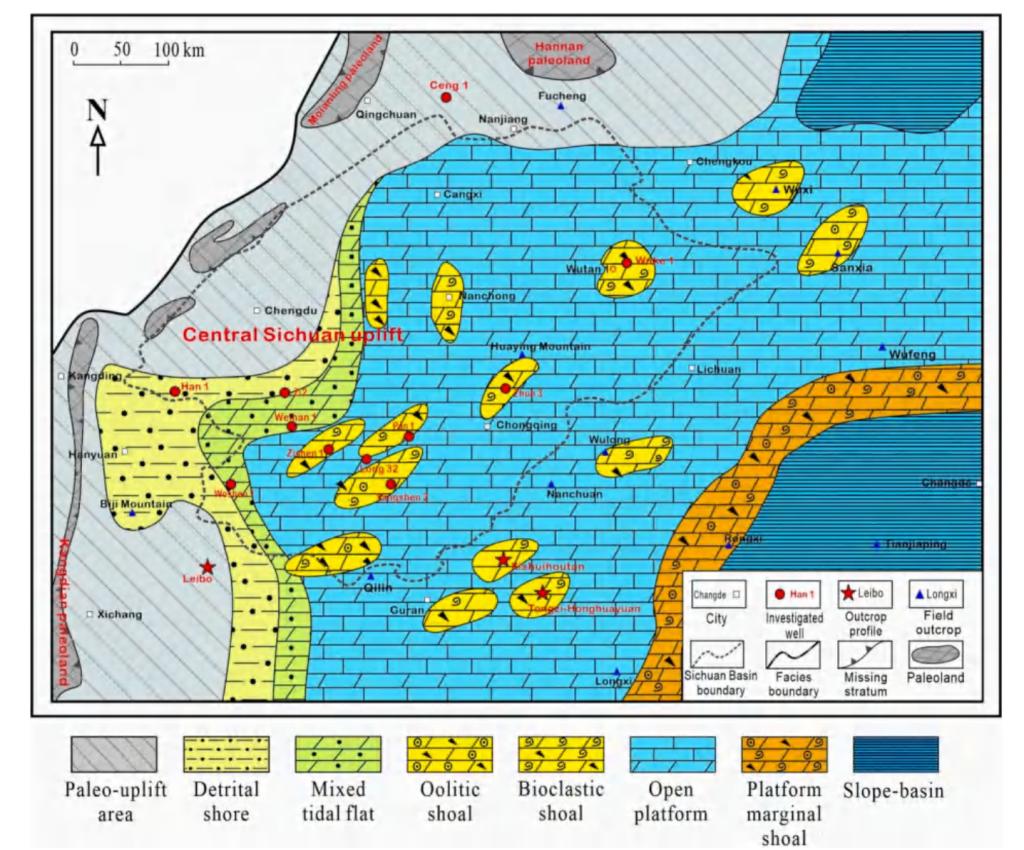 060net永利胡明毅教授团队在石油地质领域主流期刊《Marine and Petroleum Geology》发表了题为“Sedimentary facies, lithofacies paleogeography, and an evaluation of theOrdovician sequences in the Sichuan Basin, southwest China”的研究论文。论文基于露头、岩心、薄片观察,结合碳氧同位素等测试分析对中国西南部地区四川盆地奥陶系层序地层、沉积体系和岩相古地理开展了研究,将四川盆地奥陶系划分为3个二级层序、10个三级层序(图1),系统编制了该区奥陶系岩相古地理图(图1),建立了该区奥陶系沉积演化模式,认为该区早奥陶世发育镶边台地、晚奥陶世发育缓坡台地沉积。