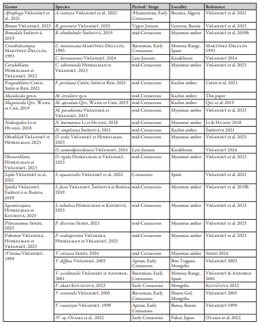 表1中生代地鳖蠊科已知属种