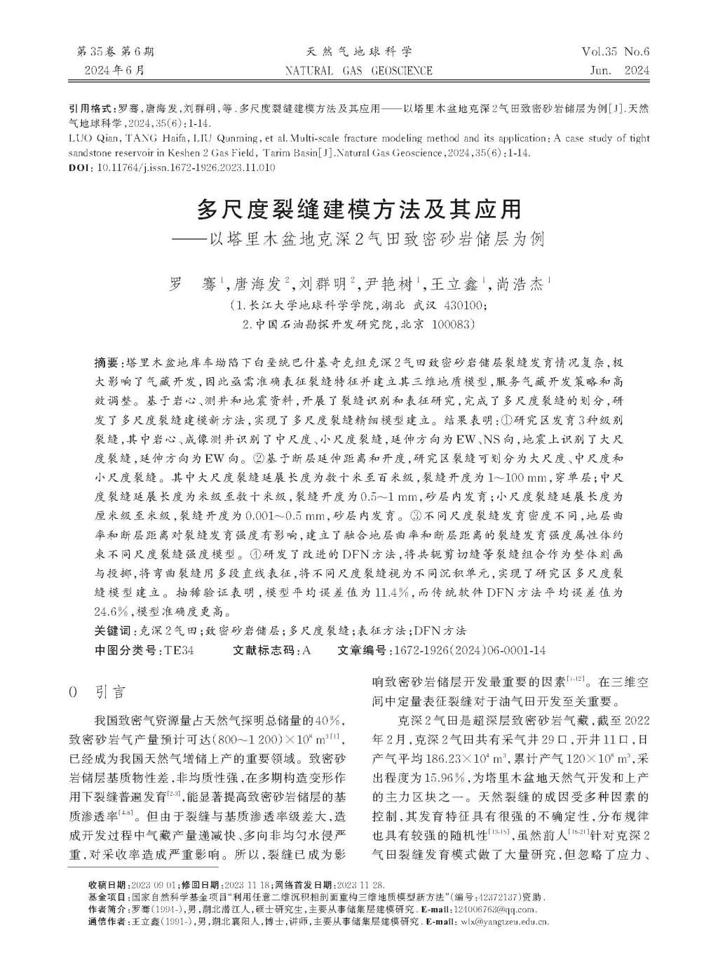 060net永利地质学研究生罗骞在《天然气地球科学》上发表了题为“多尺度裂缝建模方法及其应用——以塔里木盆地克深2气田致密砂岩储层为例”的研究论文。