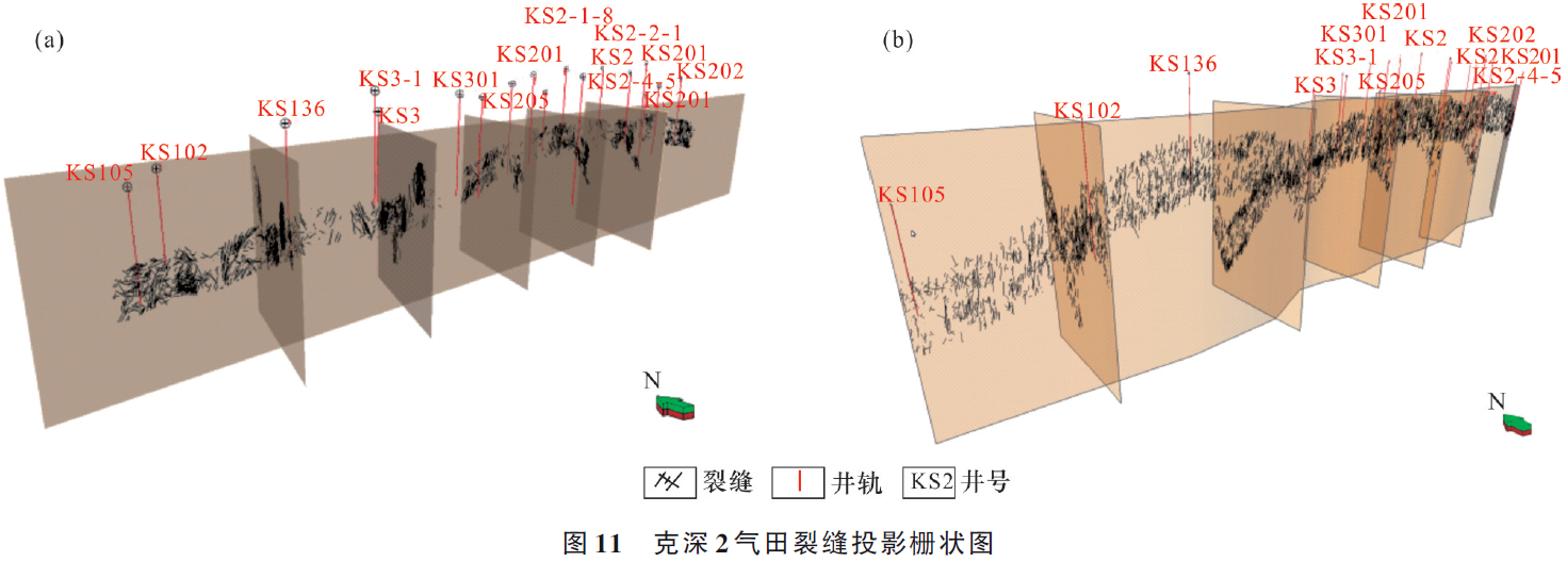 该研究基于岩心、测井和地震资料,开展了裂缝识别和表征研究,识别了研究区3种级别裂缝,利用岩心、成像测井识别了中尺度、小尺度裂缝,借助地震识别大尺度裂缝。考虑裂缝尺度与裂缝发育强度的关系,针对不同尺度裂缝,建立了融合地层曲率和断层距离的裂缝发育强度属性体,实现了构造影响下的裂缝密度模型。并研发了改进的DFN方法,将共轭剪切缝等裂缝组合作为整体刻画与投掷,将弯曲裂缝用多段直线表征,将不同尺度裂缝视为不同沉积单元,实现了研究区多尺度裂缝模型。