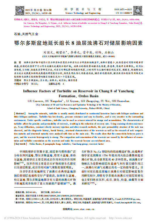 060net永利博士生刘国文在期刊《科学技术与工程》上发表题目为“鄂尔多斯盆地延长组长8油层浊沸石对储层影响因素”研究论文。060net永利为论文第一署名单位,胡望水教授为通讯作者。