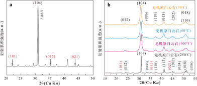 2 白云石的X射线衍射谱图及超结构衍射线(015),(021)和(101)