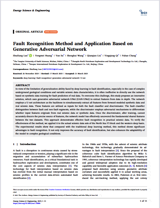 060net永利副教授罗水亮在期刊《Energy Science & Engineering》上发表题为“Fault Recognition Method and Application Based on Generative Adversarial Network”的研究论文。060net永利为论文第一署名单位,罗水亮副教授为第一通讯作者。