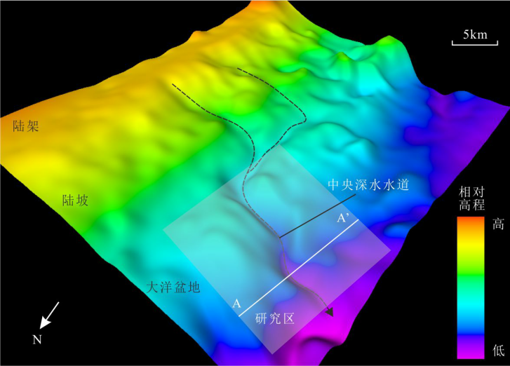 图1 北亚特兰大盆地北部地堑渐新统中央深水水道古地貌