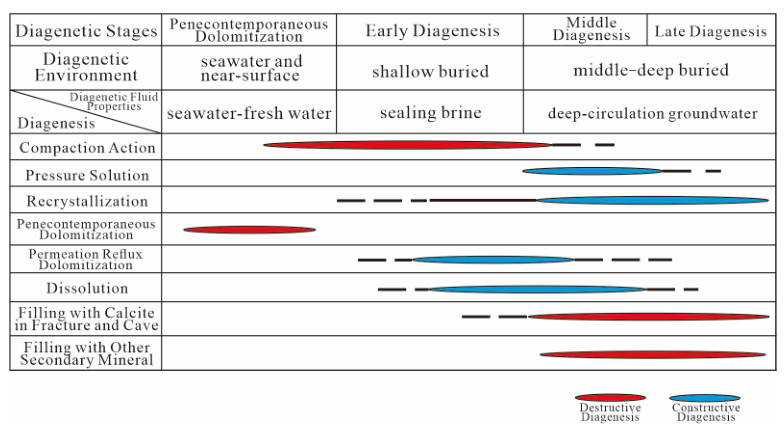 图2 鄂尔多斯盆地奥陶系马家沟组五段白云岩成岩序列图