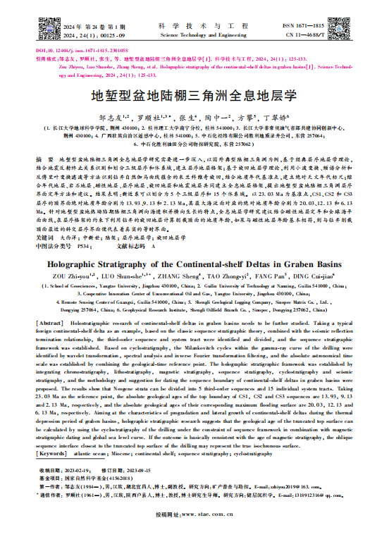 060net永利邹志友博士联合研究团队,在《科学技术与工程》期刊上发表了题为“地堑型盆地陆棚三角洲全息地层学”的研究文章。该研究聚焦于地堑型盆地陆棚三角洲的全息地层学特征,主要研究内容及成果如下: